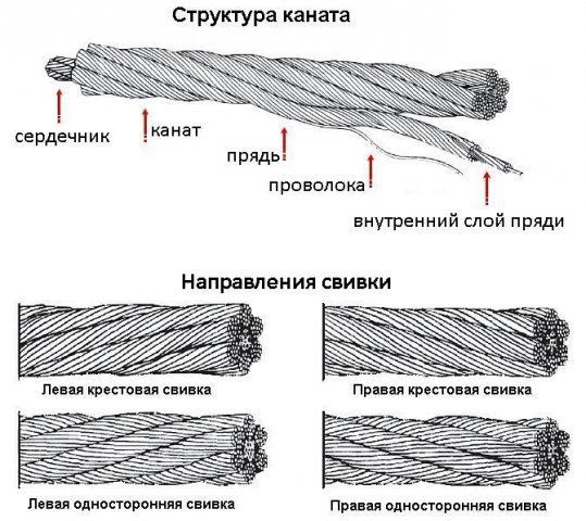 Волнистость каната характеризуется шагом и направлением ее спирали. При совпадении направлений
