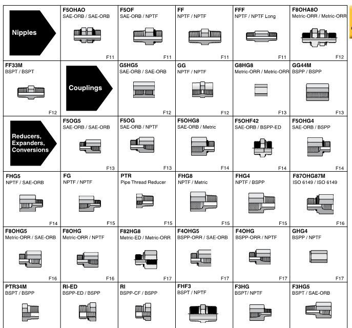 Штуцера стандарта NPTF имеют посадочный конус 60° и трубную коническую резьбу. Фитинги NPTF могут применяться как с оплеточными, так и с навивочными РВД (в случае последнего код фитинга должен начинаться на 15612-хх-хх).