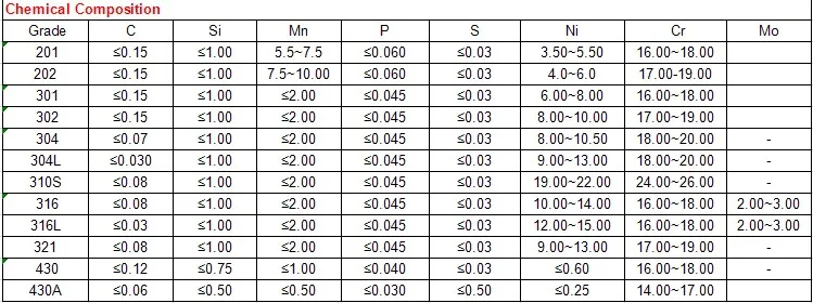 сплав серии 200 имеет несколько меньшую коррозионную стойкость, чем сплав серии 300 с тем же уровнем содержания хрома. Это может быть связано с высоким содержанием серы в сортах серии 200 из некоторых источников.