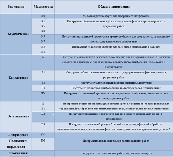- соотношение между связкой, абразивным материалом и порами изделия;