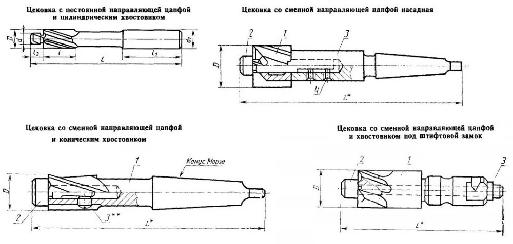 Посредством первой они зажимаются в металлообрабатывающем станке. На второй располагаются режущие кромки, цапфа, и именно она напрямую контактирует с заготовкой. Третья просто передаёт крутящий момент от производственной установки в рабочую зону цековки.