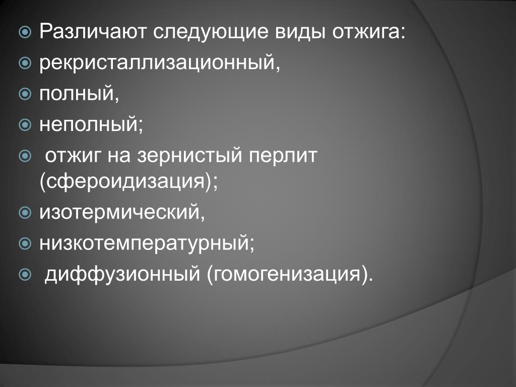 Существует три основных заранее определенных типа отжига, предназначенных для тех температурных диапазонов, которые: