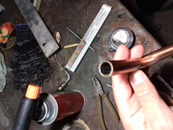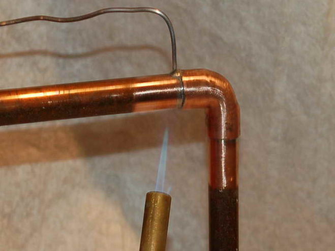 В процессе проведения работ в зазор между заготовками засыпается припой для пайки, нарезанный до состояния мелкой стружки. И лишь после этого можно будет приступать к прогреву посредством газовой горелки (в её отсутствии можно воспользоваться паяльной лампой).