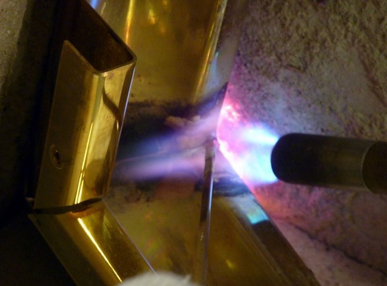 Латунь, которую планируется паять и припаивать, должна быть совсем рядом.
