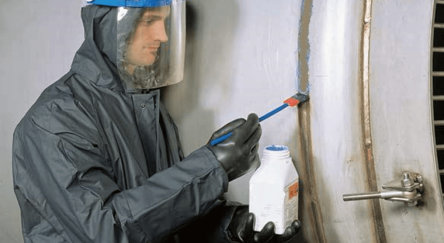 - При использовании травильной пасты необходимо носить полную защитную одежду. Это включает в себя соответствующие комбинезоны, перчатки, защитные очки и средства защиты органов дыхания премиум-класса. При использовании травильной пасты в паспорте безопасности указано требование о защите всего тела, включая органы дыхания.