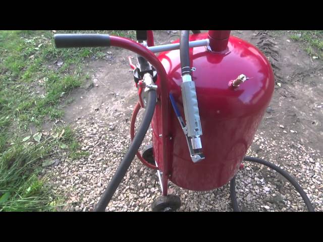 Пескоструйный аппарат такого размера обычно необходимо устанавливать на какую-либо прочную, тяжелую поверхность. Они обычно используются для удаления краски с автомобиля или другого объекта.