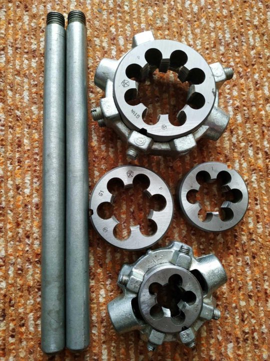 Переходные втулки позволяют использовать один вороток с плашками разного диаметра