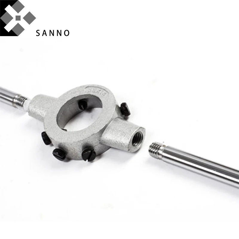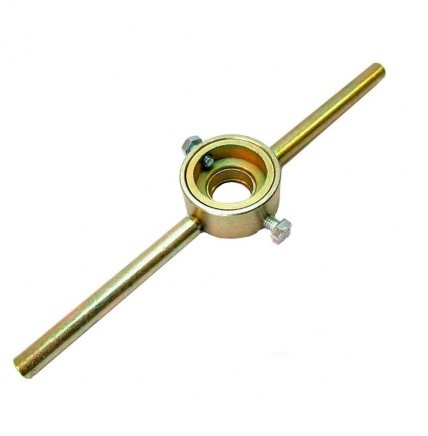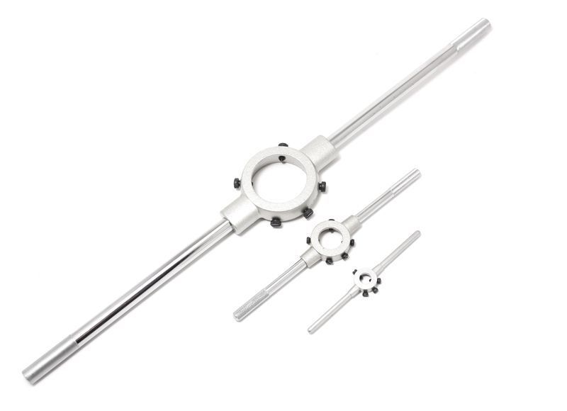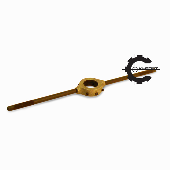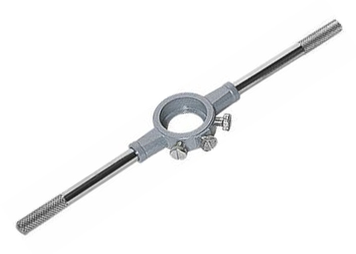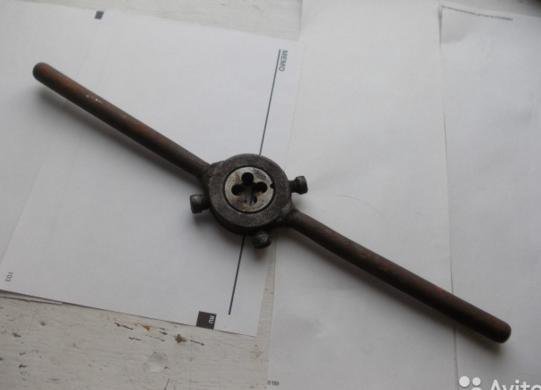 Чтобы нарезать резьбу на стальном круглом прутке вручную при помощи плашки, используется плашкодержатель с ручками. Но даже в этом случае далеко не всегда удается нарезать резьбу ровно — получается небольшой перекос.