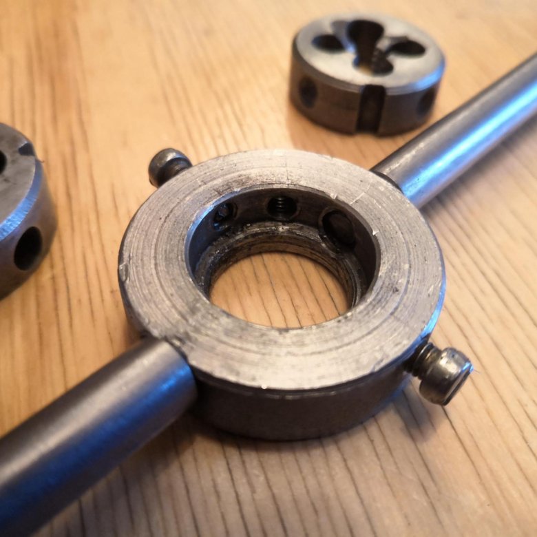 Самоделка готова. Теперь вставляем в плашкодержатель плашку нужного размера, и можно нарезать резьбу на заготовках.