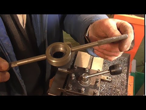 Далее на токарном станке автор растачивает в заготовке отверстие, чтобы оно подходило под наружный диаметр плашки.