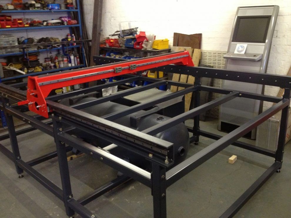 Плазморез состоит из продольной рамы с двумя прецизионными направляюшими и одной зубчатой рейкой, по которым движется каретка с установленной на ней поперечной траверсой и блоком числового программного управления (ЧПУ).