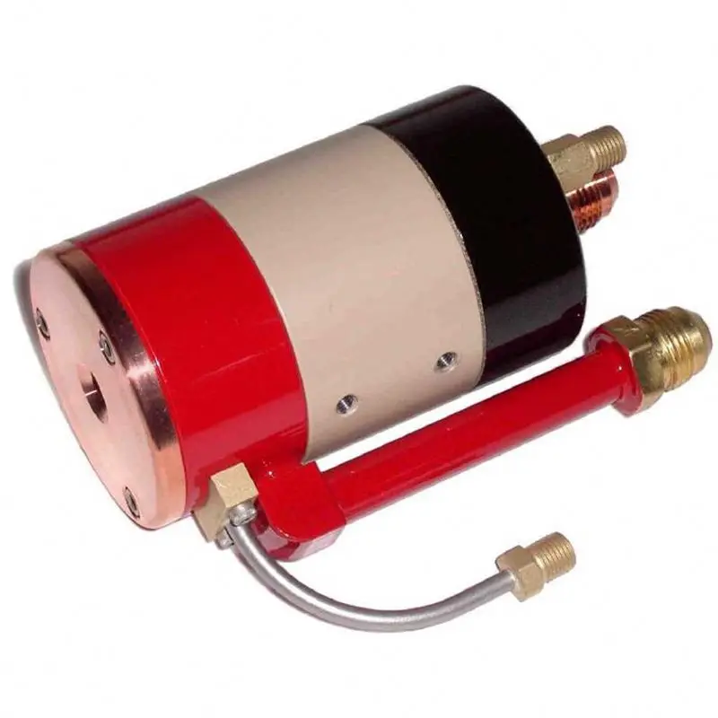 Современное, мощное (до 85 кВт, ток до 379 А, напряжение до 223 В) устройство с одним катодом и анодом — это плазматрон 100HE американской фирмы Progressive Technologies Inc., который, благодаря большому давлению и расходу плазмообразующих газов, позволяет достичь скоростей частиц — близких к скорости звука (рисунок 32):