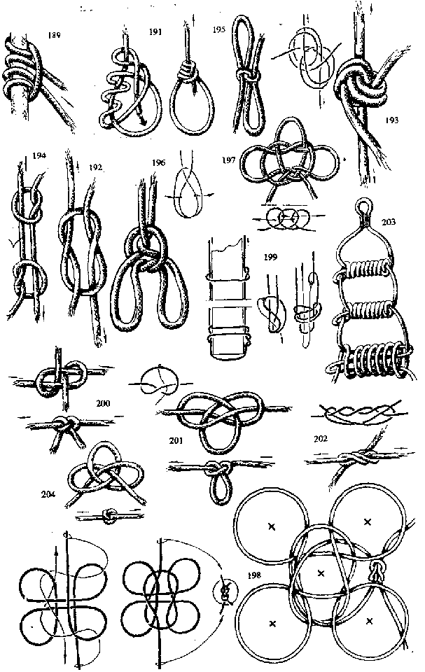 д. или двух концов разных веревок. От узла отходит ходовая ветвь, переходящая в коренную продетую в подвижный или неподвижный узел. Образуя кольцо, коренная ветвь оканчивается свободным концом, укрепленным к прочно фиксированному предмету (рис. 267).