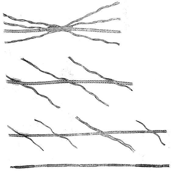 Для постепенного уменьшения толщины троса в месте пробивки рекомендуются три пряди пробить четыре раза, а остальные — только три.