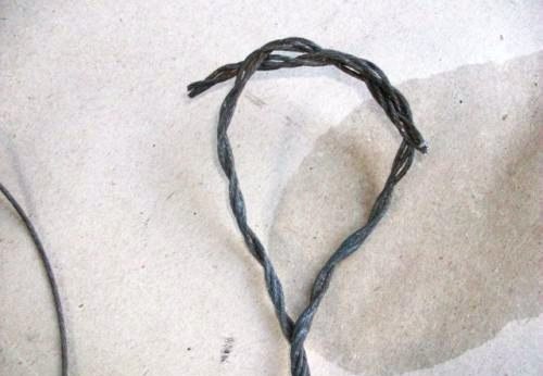 Когда концы полностью вплетены в трос, стержень можно вытащить. На этом работу можно считать почти завершенной. Осталось только намотать изоленту на двойной участок, где выступает провод.