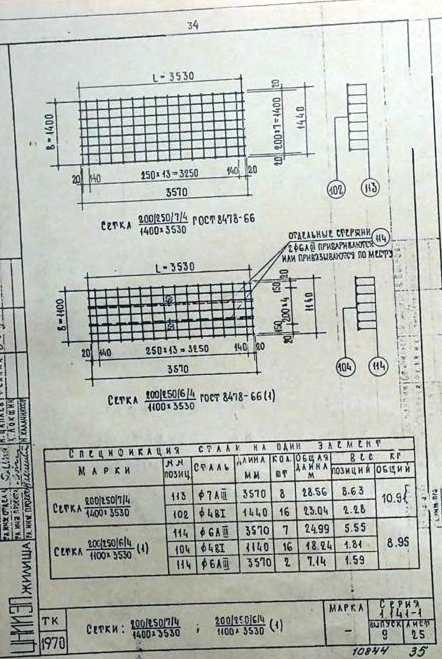 Таблица спецификации и выборка арматуры на один монтажный элемент.