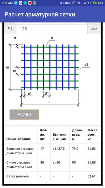 Важными параметрами считаются площадь арматуры (сечение измеряют в см2), масса погонного метра. Расчетная величина общего веса зависит от диаметра, длины прута в погонном метре и от шага, применяемого при возведении конкретного сооружения.