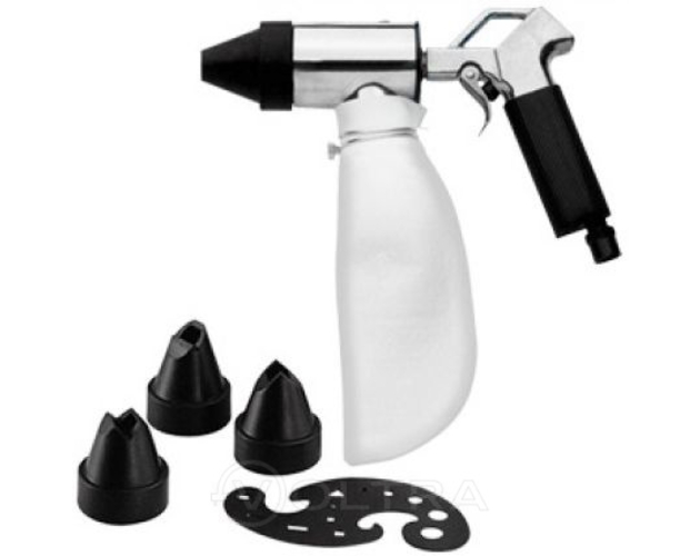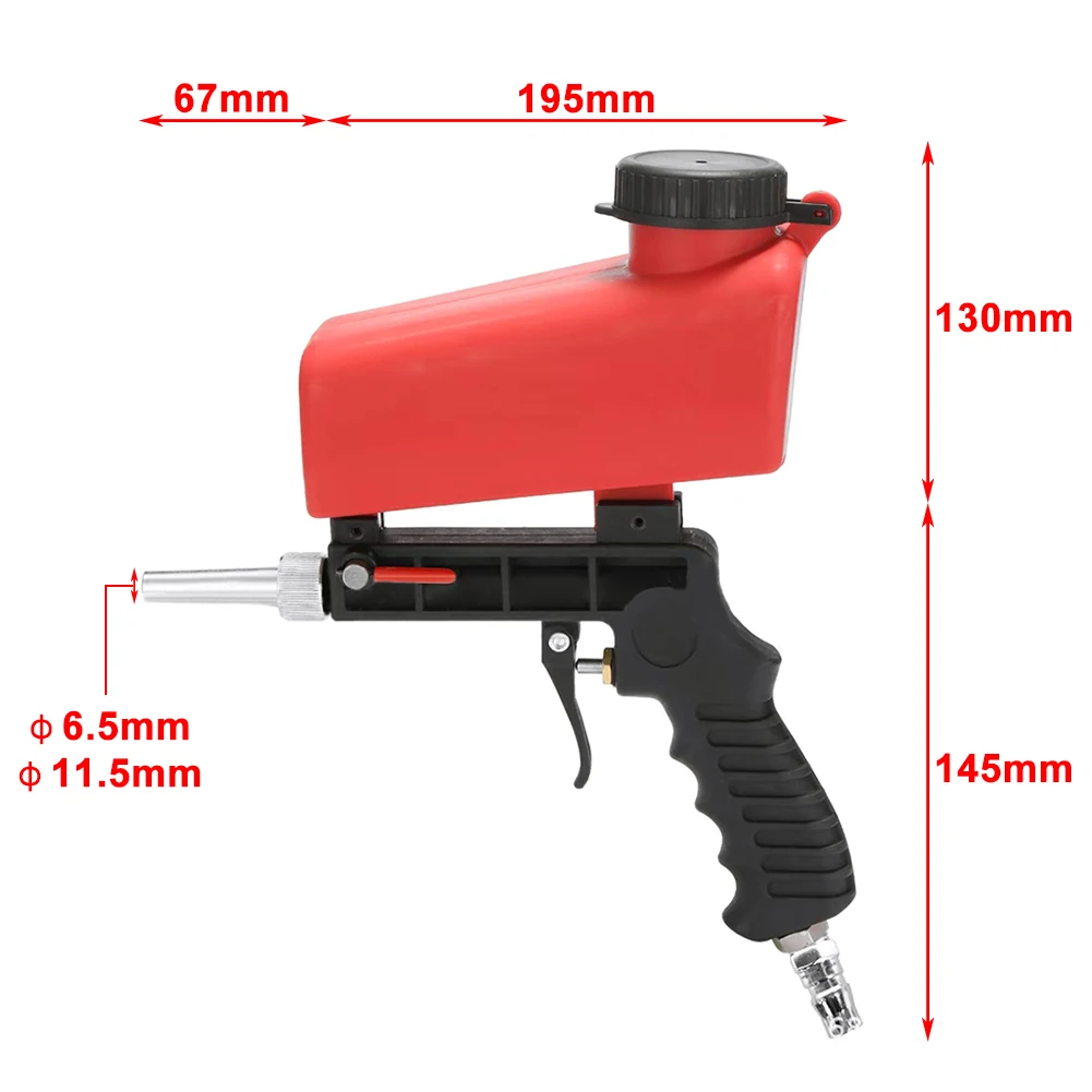 В комплекте с цельной рукояткой, баком с безопасным вентилированием, соплом из глинозема и керамики и регулируемым клапаном управления материалом, который точно дозирует поток песка.