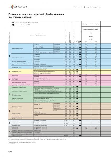 Рис. 5. Рекомендуемые подачи при обработке твердосплавными дисковыми трехсторонними фрезами