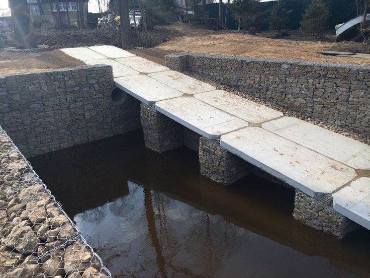 2. Вместо габионных каркасов можно использовать бетонные блоки.
