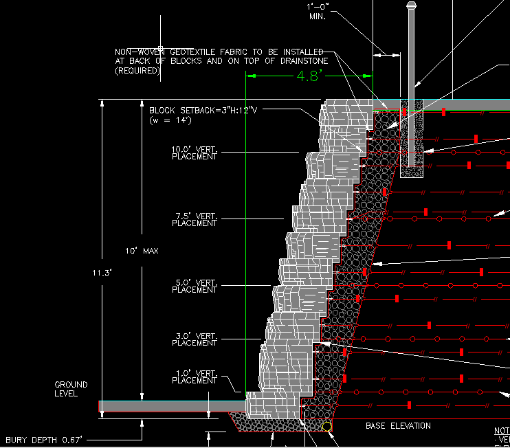 4. Эта конструкция не подходит для армированных грунтов (механически стабилизированный грунт). Вместо этого рассмотрите возможность использования модуля сегментной подпорной стенки.