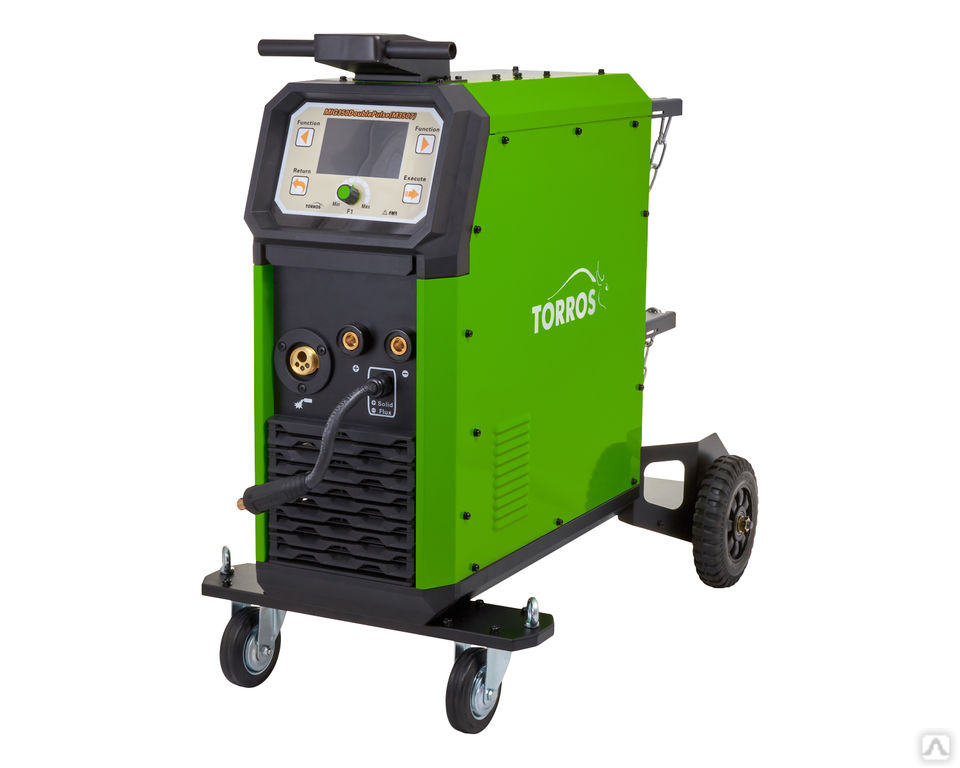 В качестве примера возьмем аппарат FUBAG IRMIG 200 SYN. Инверторный полуавтомат оснащен модулем синергетического управления, который максимально упростит настройку начинающему сварщику. В комплекте с аппаратом уже идет горелка, кабель заземления и кабель с электродержателем.