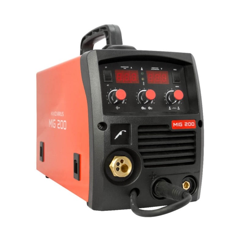 Если вы не знаете как выбрать сварочный полуавтомат для широкого объема работ, то стоит обратить внимание на данную модель. Он рассчитан на массивные катушки, но поддерживает только сварку проволокой. Максимальная величина тока в рабочем режиме составляет 200А.