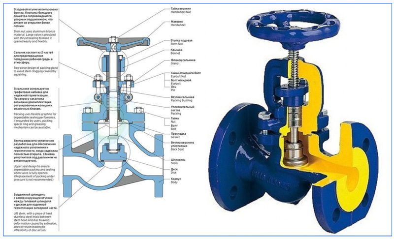 На маховике обязательно указывают направления вращения при открывании и закрывании арматуры.