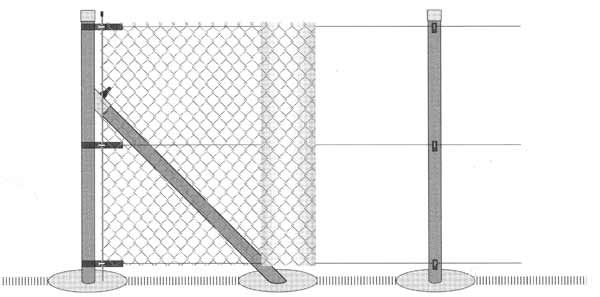 Упрочить конструкцию и защитить ее от вандалов можно с помощью дополнительной протяжки по горизонтали стальных тросов, толстой проволоки или труб небольшого диаметра, которые продеваются через 4-5 ячеек по всей длине рабицы. Чаще всего их используют по два – сверху и снизу. Концы такой протяжки привариваются или прикручиваются проволокой к опорам.