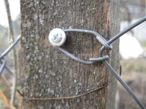 Способ, простой, но не самый надежный. Если забор на даче, во время отсутствия хозяев, сетку легко снять и унести.