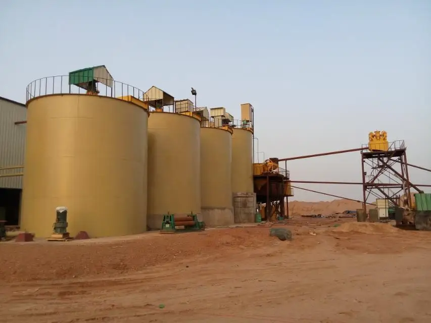 Обычно в процессе цианирования руда размещается в баках или колоннах. Цианид просачивается через руду и растворяет золото, которое затем извлекается из выщелачивателя методом адсорбции с использованием угля или смолы. Размер фракции, уровни кислорода и щелочности строго контролируются для достижения максимального показателя извлечения золота.