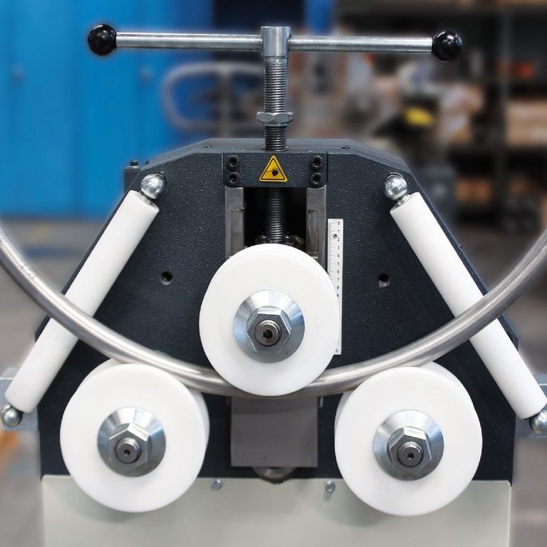 Под воздействием пружин рама становится в исходное положение. На силовой раме выполнены ряд проточек для позиционирования боковых вальцов и получения малых радиусов гибки.