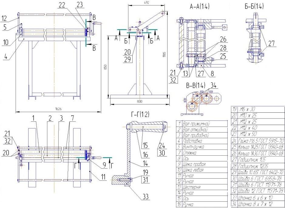 Первоначальным требованием является подготовка чертежей. В интернете можно скачать схемы профилегиба ручного. Своими руками чертежи придется переделывать, так как все предложенные схемы не могут соответствовать множественным типам профилей и проката.