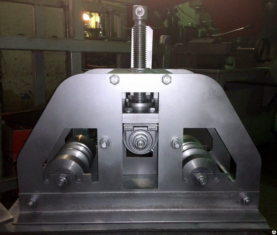 Возможен вариант, когда сверху и снизу конструкции устанавливаются деформирующие ролики (верхние и нижние). Желательно, чтобы в нижней части оборудования установить третий ролик, но такая процедура повлечет за собой необходимое вырезание в станине отверстия.