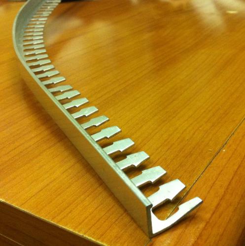 Schluter-RONDEC — это профиль для отделки и защиты кромок наружных углов облицованных плиткой поверхностей. Он имеет анкерную ножку с трапециевидной перфорацией, которая крепится к строительному раствору под плиткой, и откос, который образует симметрично закругленный внешний угол с радиусом 1/4 дюйма (6 мм) вдоль края поверхности.