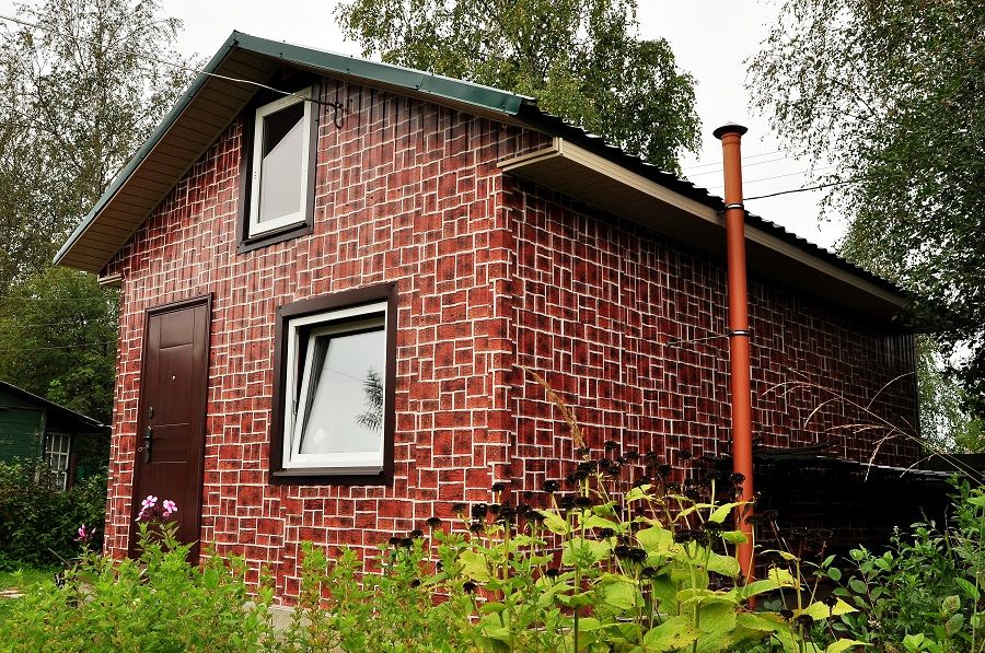Обшивка кирпичного дома профнастилом