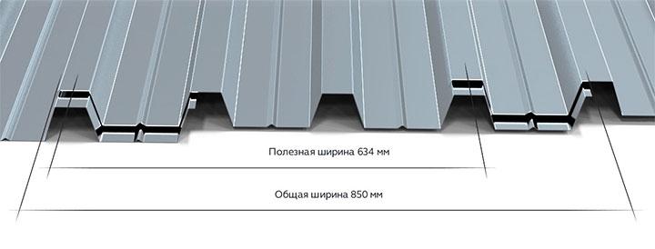 При заказе профнастила стоит учитывать, что его полезная (или монтажная) ширина всегда будет на несколько десятков миллиметров меньше общей ширины, которую называют ещё шириной заготовки.