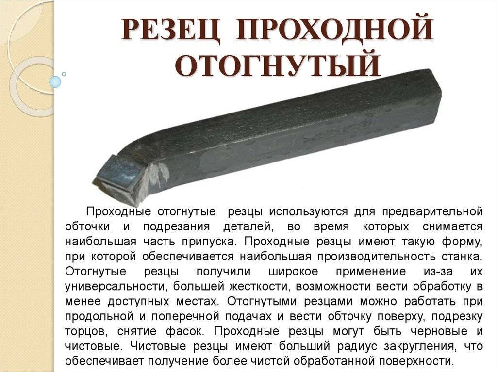 Отогнутые резцы служат для снятия фасок, обработки и подрезки выступающих частей деталей при продольной или поперечной подаче.