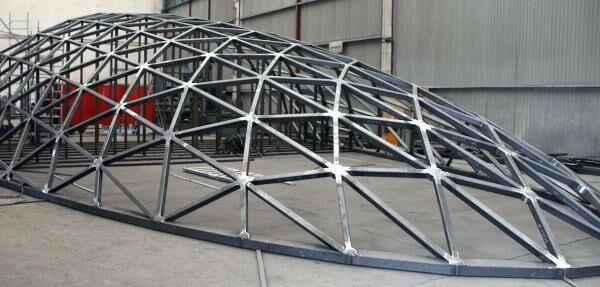 Более свежий пример — крыша Темзского барьера. Плоские панели изогнуты в двух направлениях, образуя ямочки. Крыша Doncaster Bus Workshop, Великобритания, сделана из нержавеющей стали с мозаичным рисунком для смягчения визуального компакта.