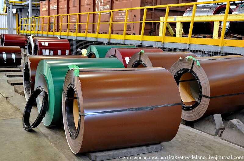 После фиксации покрытия рулоны разделяются на рулоны меньшего размера (по требованию заказчика от 3 до 10 тонн), упаковываются и отправляются потребителю.