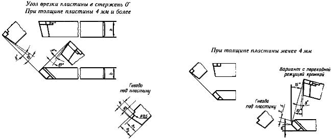 А четырёхгранные пластинки предназначены для резцов, которые работают с врезанием, с углами φ=45º (как на рисунке под буквой б и как изготовленный мной резец в видеоролике под статьёй) и бывают с углом 60º как на рисунке под буквой в.