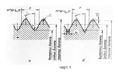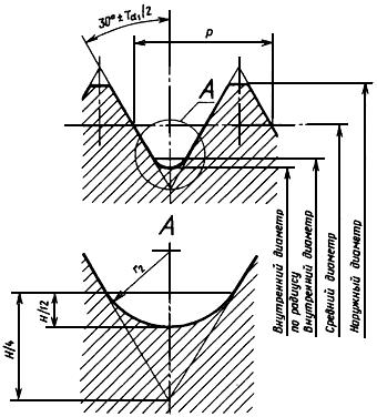 Делительный диаметр находится между большим и меньшим диаметром наружной или внутренней резьбы.