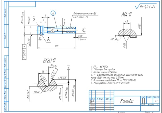 Расчет резьбовых калибров: 6.4. Расчет исполнительных размеров пр и не резьбовых калибров-пробок для внутренней резьбы (гайки) м16×1,5 – 7g