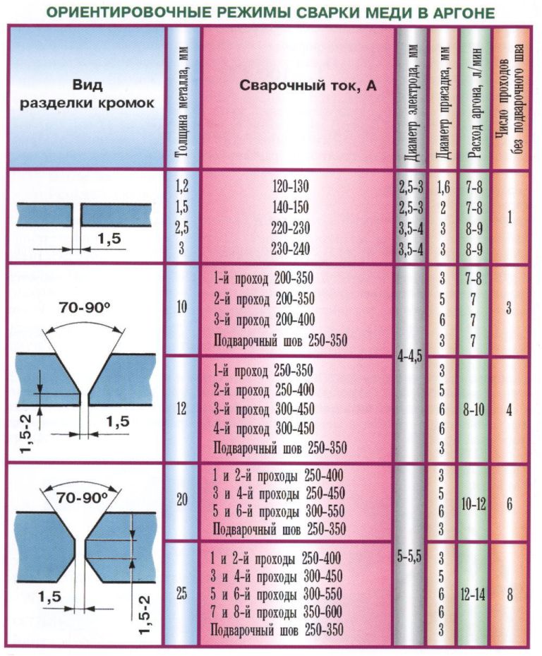 Ниже в таблице приведены рекомендуемые значения, которые известны любому профессиональному сварщику, но которые могут быть полезны для любителей и новичков.