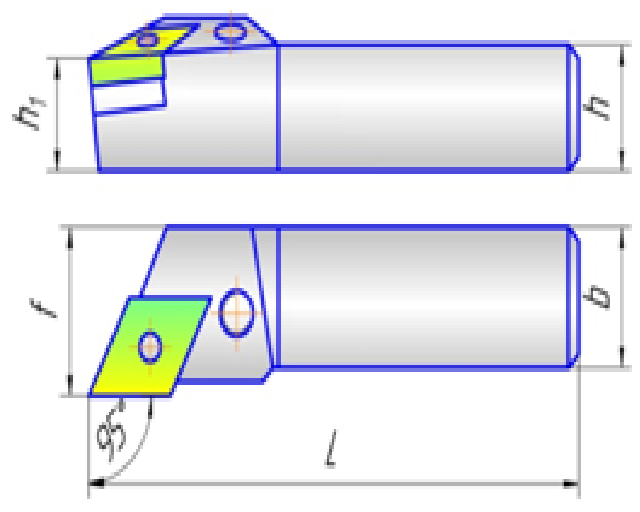 1. Для обработки глухих отверстий, режущая платина таких резцов имеет треугольную форму, а рабочая часть выполнена с изгибом.