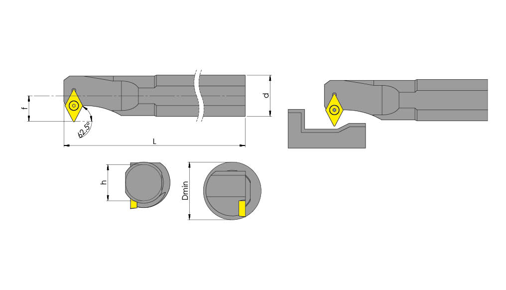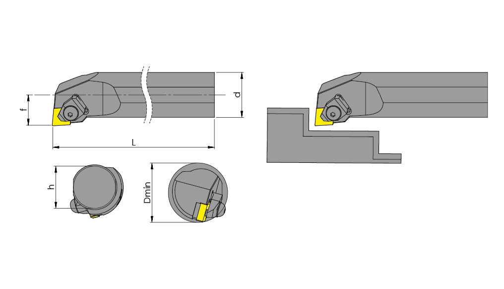 Угол, под которым расточная оправка зажимается в оправке, означает, что расточная оправка становится толще с увеличением длины оправки. Это приводит к более стабильному инструменту.