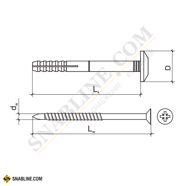 | Дюбель потай 6×51 | 6 | 3.5-4.5 | 1000 |