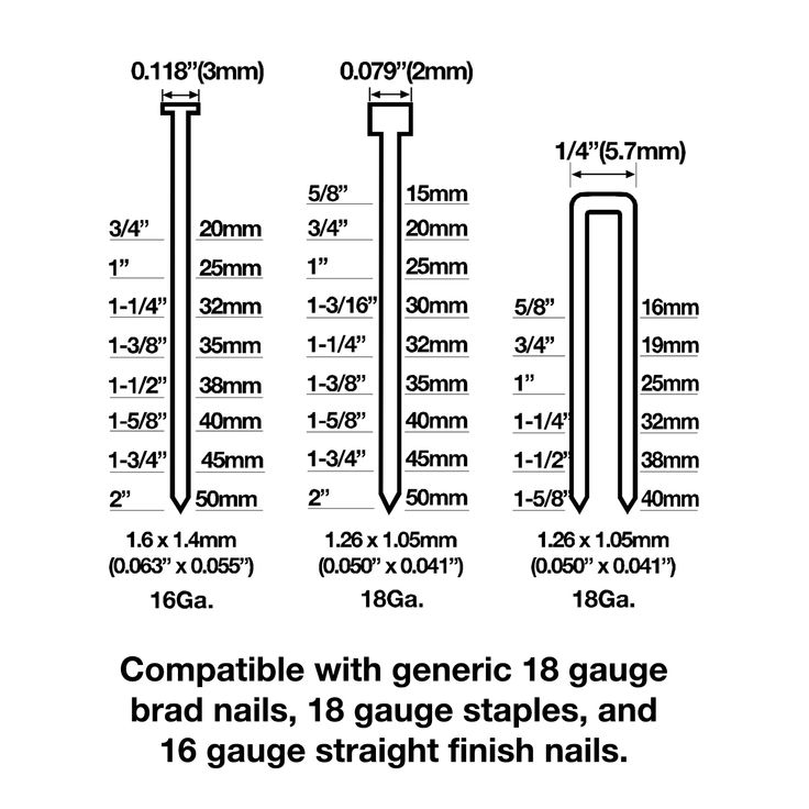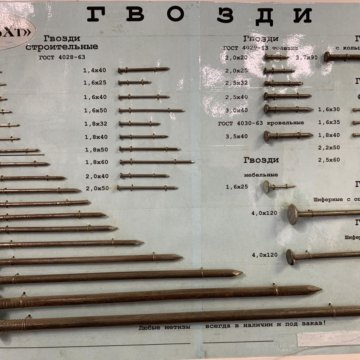 Вы можете найти сравнение различных типов гвоздей с определенными размерами, как показано на диаграмме ниже.