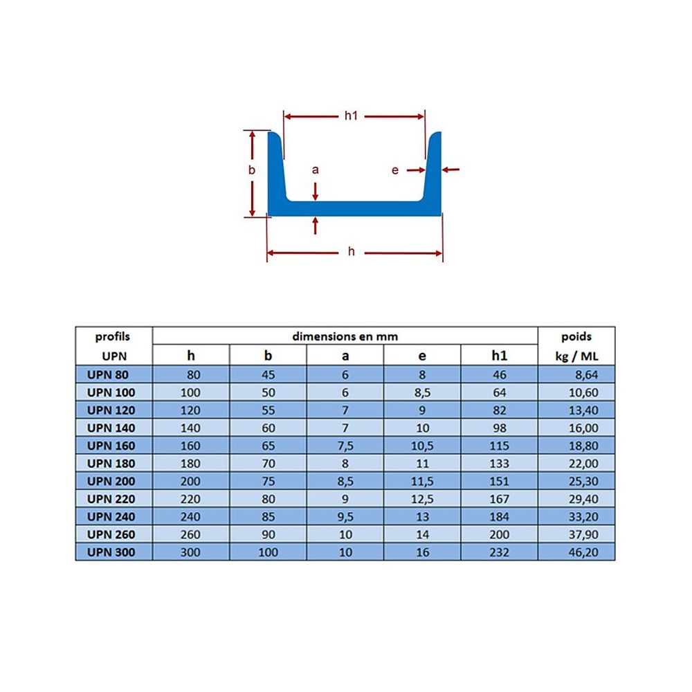| УПН | 240 | УПН — 240 | 85 | 13 | 240 | 9,5 | 33,2 | EN 10365: 2017 | Швеллер U-образный фланцевый конический |