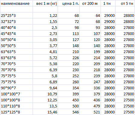 | Металлобаза | Цена
